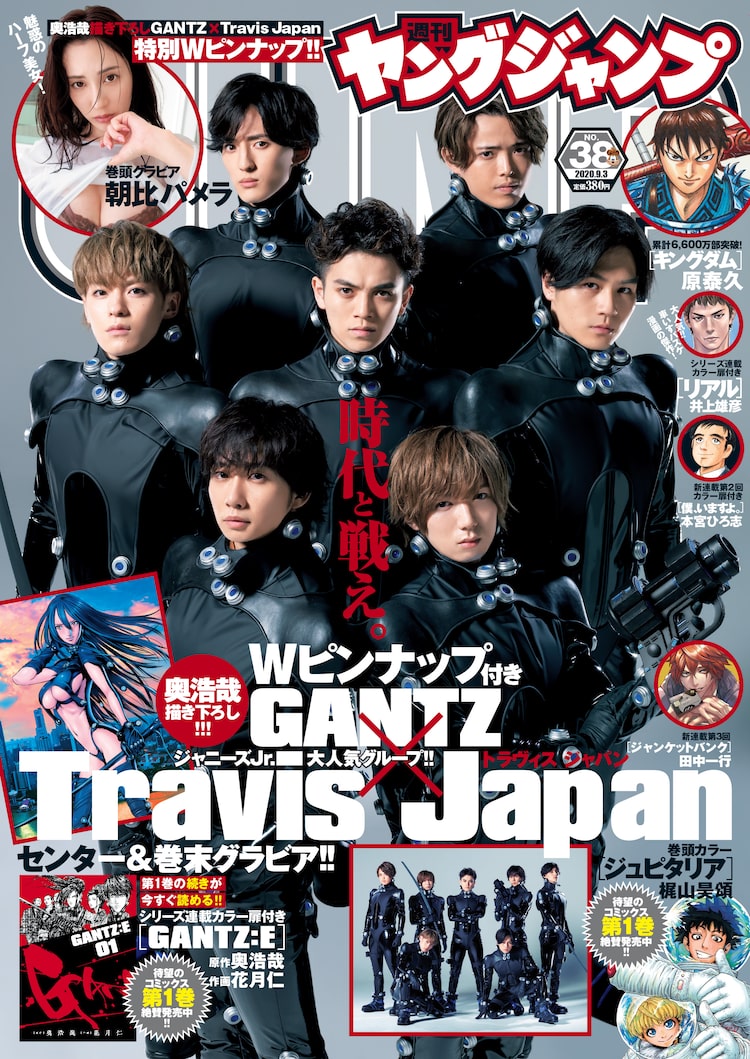 8月20日に発売される週刊ヤングジャンプ38号(集英社)にて、奥浩哉「GANTZ」とジャニーズJr.のグループ・Travis Japanがコラボレート。表紙、センター・巻末グラビアに登場する。