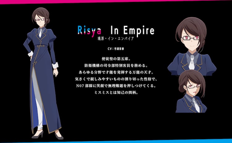 TVアニメ「キミと僕の最後の戦場、あるいは世界が始まる聖戦」の追加キャストが発表された。使徒聖の第五席で、万能の天才である璃洒・イン・エンパイア役を竹達彩奈、第八席であり、光学迷彩スーツに身を包んだ暗殺者・ネームレス役を笠間淳が演じる。