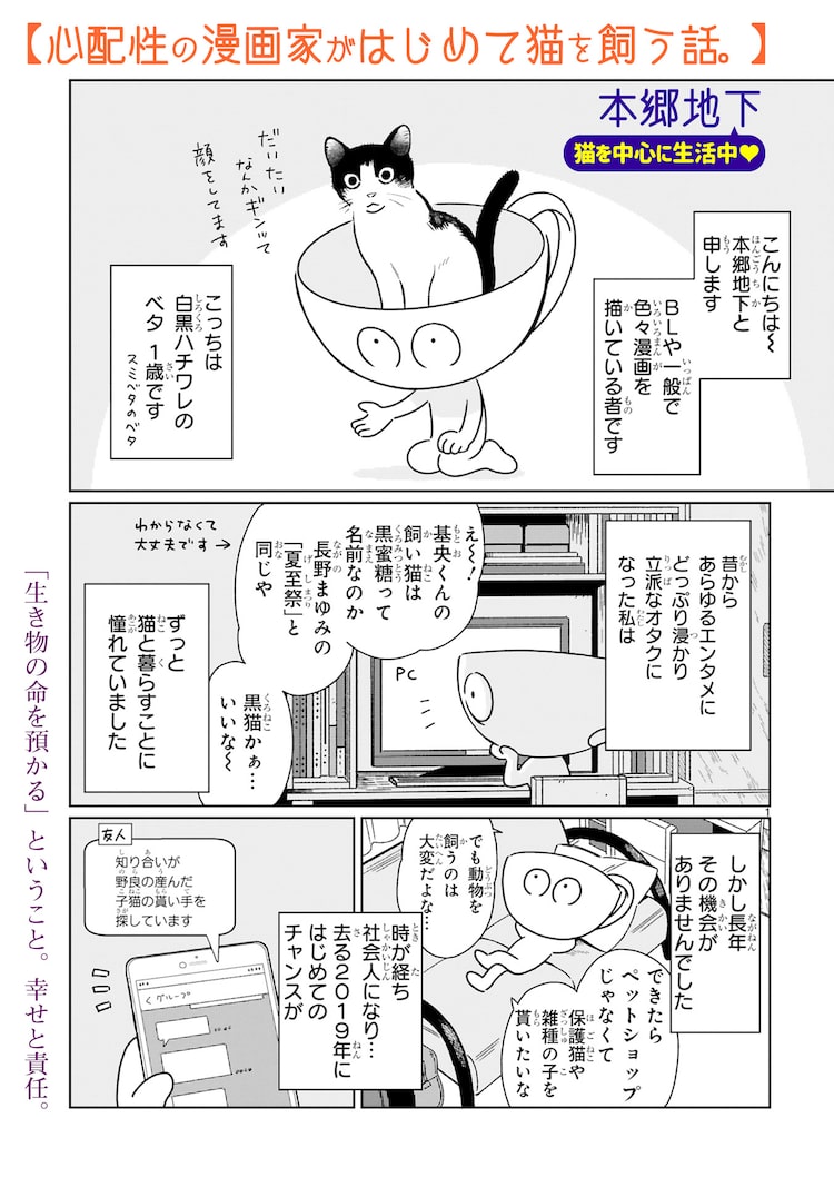 本郷地下が愛猫との生活描く読切「心配性の漫画家がはじめて猫を飼う話。」