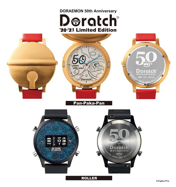 「ドラえもん」50周年記念した、鈴型モデル&ローラー式腕時計