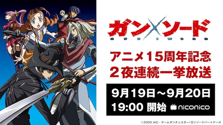 TVアニメ「ガン×ソード」の15周年を記念した一挙放送が、ニコニコ生放送にて9月19日、20日に行われる。