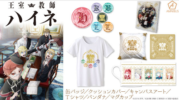 赤井ヒガサ原作によるテレビアニメ「王室教師ハイネ」の缶バッジやTシャツなどのグッズが、通販サイト・AMNIBUSより発売される。