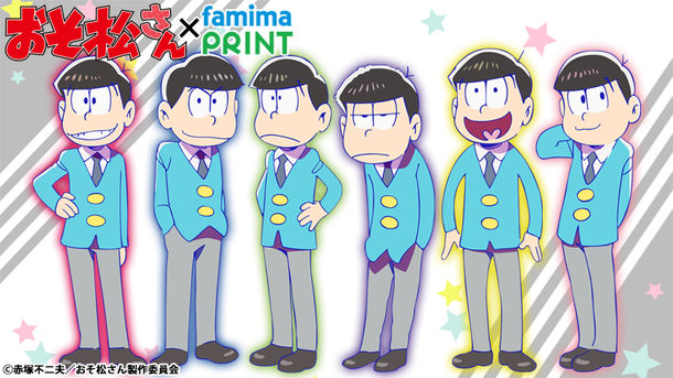 赤塚不二夫原作によるテレビアニメ「おそ松さん」のブロマイドが、ファミリーマート、サークルK・サンクスの店頭にあるマルチコピー機「ファミマプリント」で明日8月16日から9月30日まで販売される。