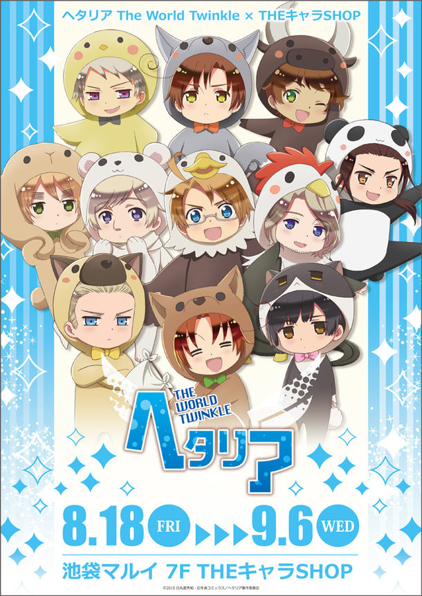 日丸屋秀和原作によるアニメ「ヘタリア The World Twinkle」の期間限定ショップ「ヘタリア The World Twinkle×THEキャラSHOP」が、8月18日から9月6日までの期間限定で東京・池袋マルイにお目見えする。
