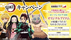 吾峠呼世晴原作による「劇場版『鬼滅の刃』無限列車編」が10月16日に公開されることを記念し、全国のローソンストア100で10月14日から11月10日までの期間、「鬼滅の刃」キャンペーンが展開される。
