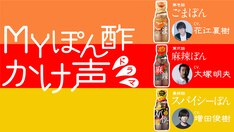 「MYぽん酢 “かけ声” ドラマ」は、ぽん酢をかける映像に声優陣が声をかける“かけ声”を中心に展開されるもの。花江は「第壱話『ごまぽん~君のちょいかけをみていたい~篇』」、大塚は「第弐話『麻辣ぽん~ピリ辛が好きなとこ俺以外に見せるなよ~篇』」、増田は「最終話『スパイシーぽん~相性抜群すね!肉と~篇』」にそれぞれ出演し、「君は知ってる?そのMYぽん酢に、ごまが何粒入っているか」「俺、知らなかったよ。お前、辛いのいけんだな」「先輩!ふふ、つまみ食いしましたよね?」とぽん酢をかける映像に“かけ声”を加え、恋愛ドラマを展開していく。