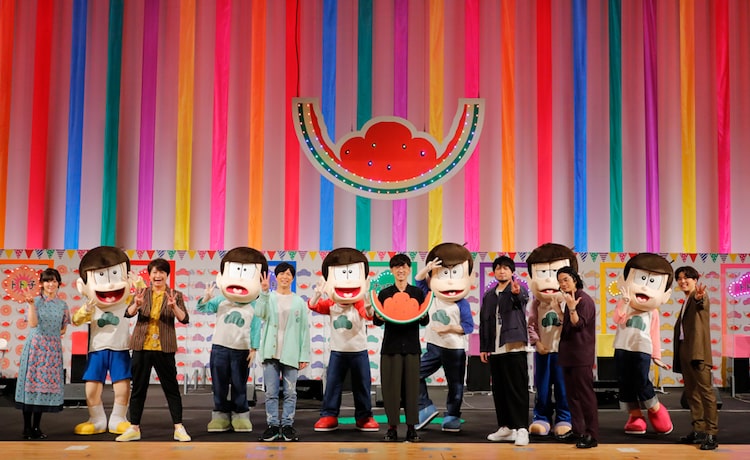 後半では「絆を確かめる!6つ子ジェスチャークイズ対決」を展開。着ぐるみの6つ子たちがジェスチャーを行い、その担当キャストが回答するという内容で、次々問題をパスする一松や、動きの大きい十四松など、ペアごとに個性あふれるジェスチャーが繰り広げられた。笑いが絶えない約1時間半にわたるイベントを締めくくったのは、代表の櫻井から視聴者へのメッセージ。櫻井は「ぜひ1話を見ていただきたいですね。まったく懲りてないです」と切り出し、「3期収録にあたって藤田陽一監督と脚本の松原秀さんが意気込みの号令をかけたんですが、まあそれがゆるくて。『じゃあ働きましょう』みたいな感じだったんですよ。我々精一杯働いております。だから皆さんに観ていただきたいのです。楽しいし面白いのはお約束します」と呼びかけた。