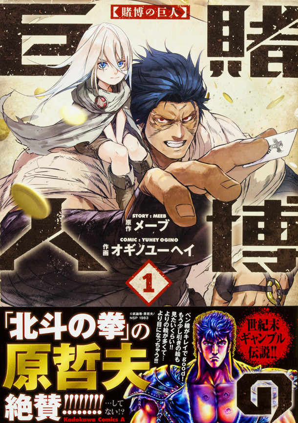 メーブ原作・オギノユーヘイ作画「賭博の巨人」1巻が、本日4月10日に発売された。ヤングエース(KADOKAWA)連載作の単行本化で、帯には「北斗の拳」の原哲夫が推薦文を寄せている。