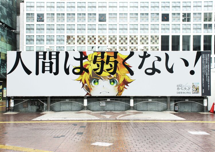 白井カイウ原作による出水ぽすか「約束のネバーランド」の完結20巻が、明日10月2日に発売される。これに併せ、本日10月1日より東京・渋谷のハチ公前広場に同作の広告が掲出されている。