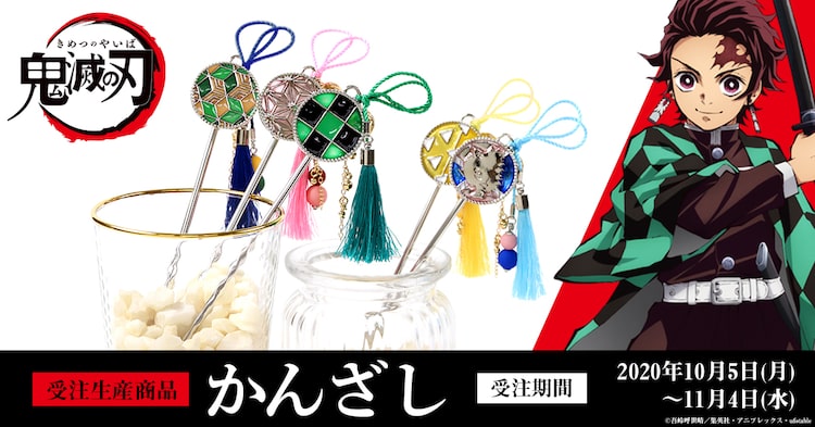 吾峠呼世晴原作によるTVアニメ「鬼滅の刃」に登場する炭治郎、禰豆子、善逸、伊之助、義勇をイメージしたかんざしが、ムービックより発売される。