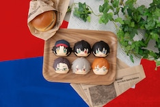 「ふかふかスクイーズパン」は、焼きたてパンのようなもちもちの手触りを楽しめるスクイーズ素材のボールチェーン付きマスコット。用意されたのはイケブクロ・ディビジョン“Buster Bros!!!”の山田一郎・山田二郎・山田三郎、ヨコハマ・ディビジョン“MAD TRIGGER CREW”の碧棺左馬刻・入間銃兎・毒島メイソン理鶯、シブヤ・ディビジョン“Fling Posse”の飴村乱数・夢野幻太郎・有栖川帝統、シンジュク・ディビジョン“麻天狼”の神宮寺寂雷、伊弉冉一二三、観音坂独歩の全12種。「イケブクロ&ヨコハマBOX」と「シブヤ&シンジュクBOX」も用意され、購入すると4ディビジョン全12種のキャラクターが揃えられる。