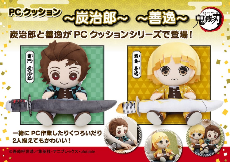 吾峠呼世晴原作によるアニメ「鬼滅の刃」より、竈門炭治郎と我妻善逸のPC用クッションがバンダイより発売される。