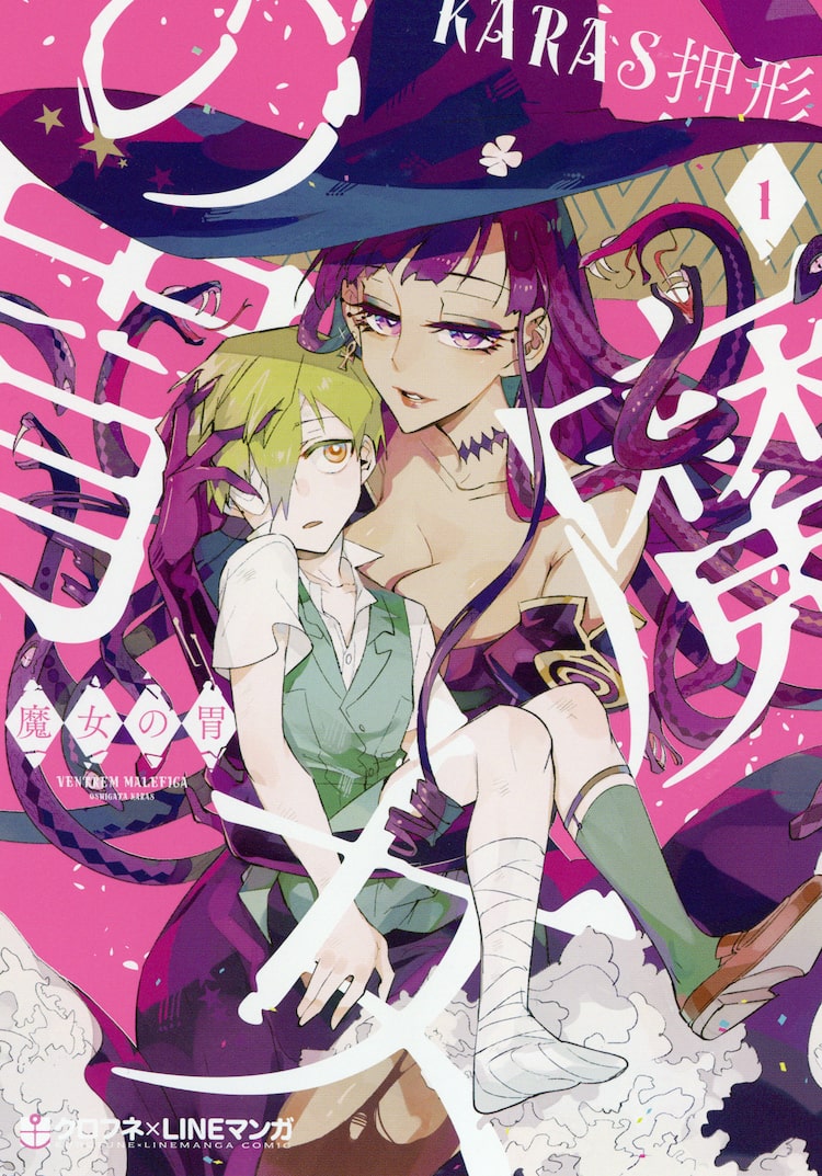 台湾の新鋭・KARAS押形が描く「魔女の胃」は、人々から恐れられている蛇憑きの魔女・メイサと人間の少年・レオハトを描く異種間恋愛ファンタジー。メイサある日、戦場で傷だらけの少年を拾う。命を助けられた代わりに従者としてメイサに尽くすことを誓い、彼女からレオハトと名付けられた少年だったが、実際には彼女に助けられてばかりで……。同作はクロフネ×LINEマンガにて連載中。