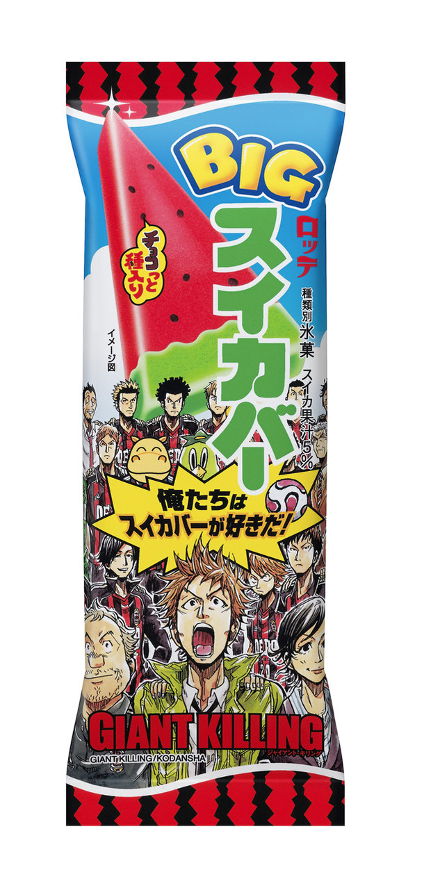 綱本将也原案によるツジトモ「GIANT KILLING」と、ロッテのアイス「BIGスイカバー」がコラボレート。限定パッケージの商品を4月24日より販売する。