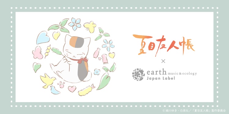 緑川ゆき原作によるアニメ「夏目友人帳」と、アパレルブランド・earth music&ecologyが展開するJapan Labelとコラボレート。ニャンコ先生をモチーフにしたアイテムの受注が、通販サイトのSTRIPE CLUBにて明日10月30日18時からスタートする。
