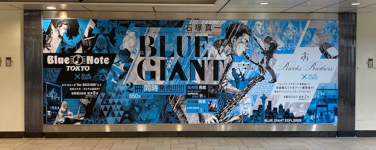 石塚真一「BLUE GIANT SUPREME」最終11巻と「BLUE GIANT EXPLORER」1巻が同時発売されたことを記念し、本日11月2日から8日までの期間、東京・表参道駅改札内に特大ポスターが掲出されている。