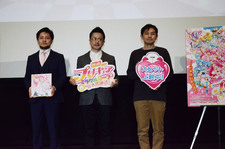 「映画プリキュアミラクルリープ みんなとの不思議な1日」のスタッフトーク付き上映会が本日11月5日に東京・新宿バルト9で行われ、深澤敏則監督、脚本の村山功、キャラクターデザイン・作画監督の板岡錦、内藤圭祐プロデューサーが登壇した。なお当記事には映画のネタバレが含まれるためご注意を。