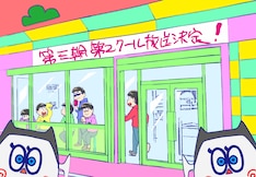 テレビ東京、テレビ愛知、テレビ大阪ほかにて放送中のアニメ「おそ松さん」第3期。第2クールは1月より同枠にてオンエアされる。なお第2クール決定を記念し、第3期のキャラクターデザインを務める安彦英二描き下ろしによるビジュアルが公開。第3期の新キャラクターである、双子のAIロボット・オムスビのシャケとウメと、コンビニのイートインでいつものように談笑している6つ子の姿が描かれた。