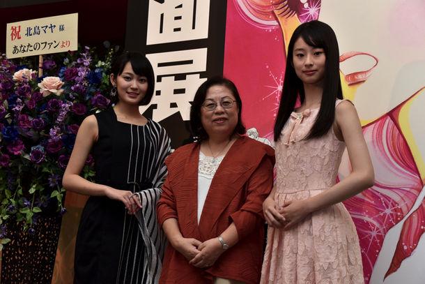 続けて、「全日本国民的美少女コンテスト」の第13回グランプリ受賞者・吉本実憂と第15回グランプリ受賞者・井本彩花が登壇。吉本は「好きなキャラクターは月影先生。あの強さが好きなので、今日の衣装も……」と、月影先生をイメージしたというシックなドレスを見せた。井本は「『椿姫』の公演のチケットを手に入れるためにどんなことでもするマヤが印象的」と言い、司会からの「北島マヤみたいな女優になりたい?」という質問に「はい」と力強く答えた。また司会から美内に「ありとあらゆるところで聞かれていると思うのですが……」とおずおずと質問が。最後まで言う前に美内は「予測はつきます」と笑い、司会は「待っていて大丈夫でしょうか?」と、2012年を最後に新刊が出ていない「ガラスの仮面」の続きに言及。美内は「大丈夫です」と答え、「『ガラスの仮面』のラストは20年以上前から最終ページの構図まで決まっている。なぜそこまで行きつかないのかということだけが問題」としつつ、「『紅天女』を充実したいというふうに思っています。すみません皆さん、健康に気を付けてついてきてください!」とファンに呼びかけ、囲みインタビューは終幕した。