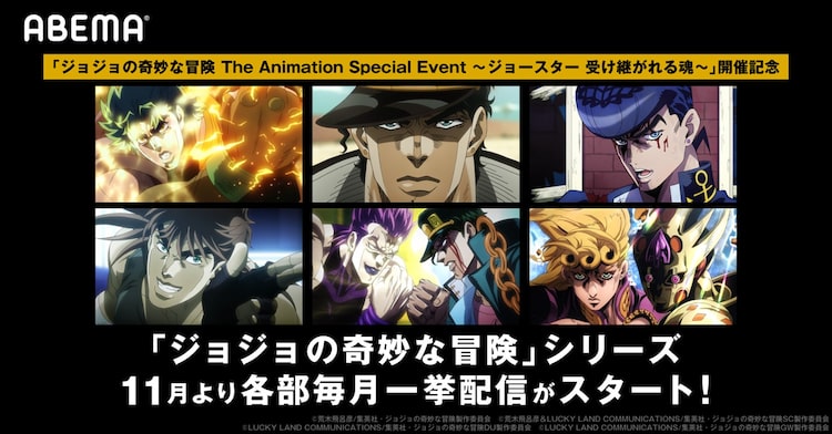 アニメ「ジョジョの奇妙な冒険」シリーズ、ABEMAで各部を毎月一挙無料配信