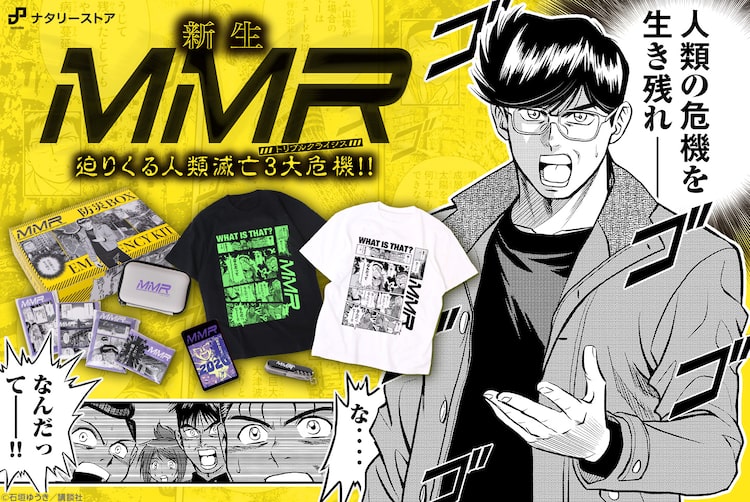 石垣ゆうき「新生MMR 迫りくる人類滅亡3大危機!!」をモチーフにした日常使いもできる防災グッズが、ナタリーストアから発売される。