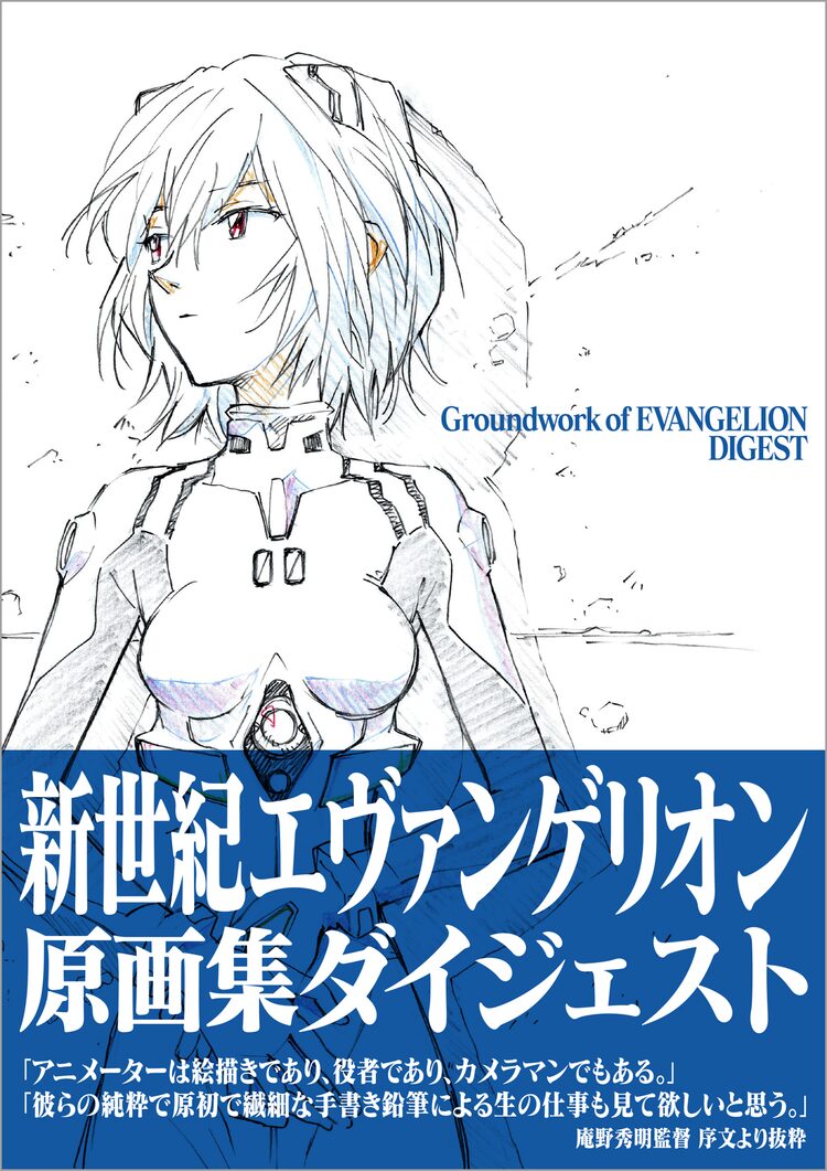 庵野秀明が監修を務めた「新世紀エヴァンゲリオン原画集ダイジェスト」には、これまでに刊行された「新世紀エヴァンゲリオン 原画集 Groundwork of EVANGELION」全3巻の内容をダイジェストで収録。TVシリーズのオープニング、第1話から第26話までの中からセレクトされた原画と修正原画、レイアウトおよびレイアウト修正、タイムシートの一部に加え、新たに見つかった原画がフルカラーで追加収録されている。