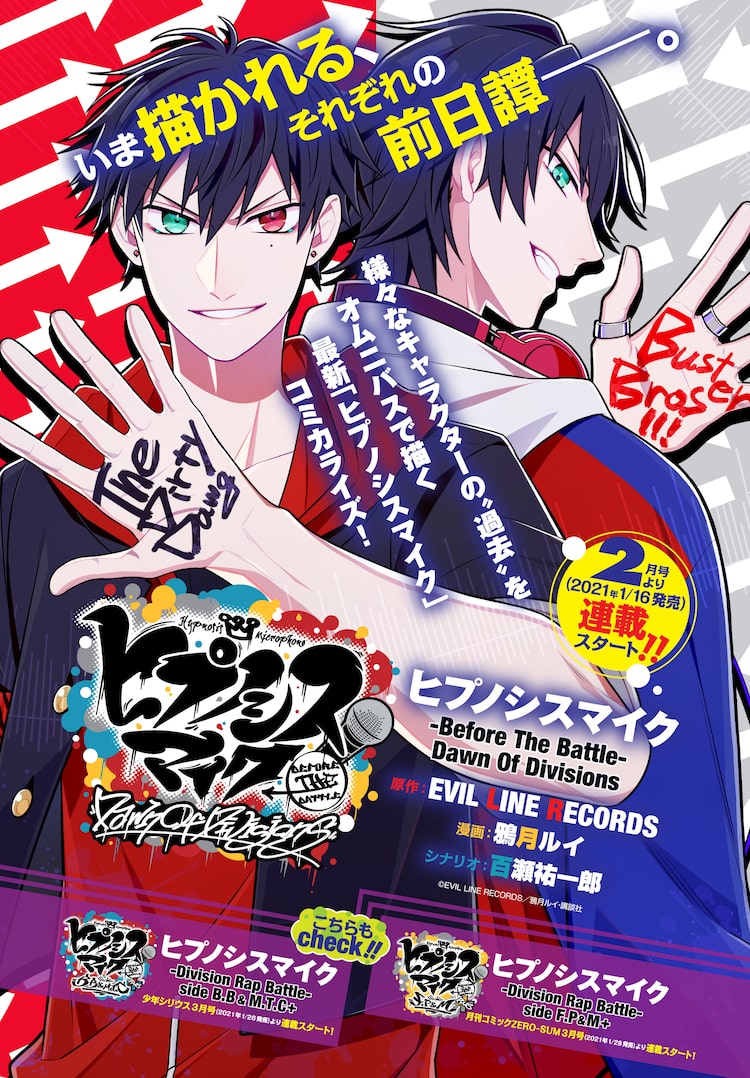 「ヒプノシスマイク -Division Rap Battle-」の新たなコミカライズシリーズ「ヒプノシスマイク -Before The Battle- Dawn Of Divisions」が少年マガジンエッジ(講談社)にて始動。本日12月17日発売の同誌2021年1月号にプロローグが掲載された。