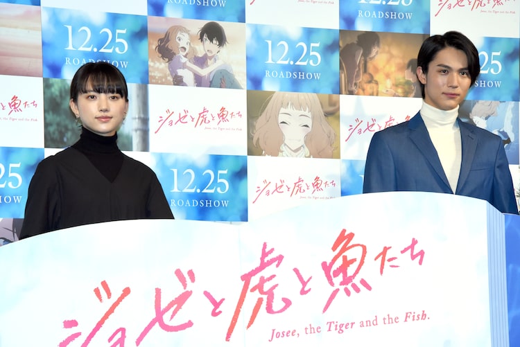イベントには鈴川恒夫役の中川大志、ジョゼ役の清原果耶が登壇。「ジョゼと虎と魚たち」が12月25日のクリスマスに公開ということもあり、壇上にはクリスマスツリーも用意された。