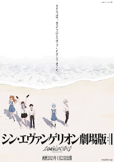 2021年1月23日に全国公開される「シン・エヴァンゲリオン劇場版」。本予告映像では、これまで「ヱヴァンゲリヲン新劇場版」シリーズすべてに楽曲提供をしてきた宇多田ヒカルが、今作のために書き下ろしたテーマソング「One Last Kiss」の一部が初公開された。また映画の総作画監督・錦織敦史の描き下ろしとなるポスターには、シンジ、レイ、アスカ、カヲル、マリの姿が描かれた。
