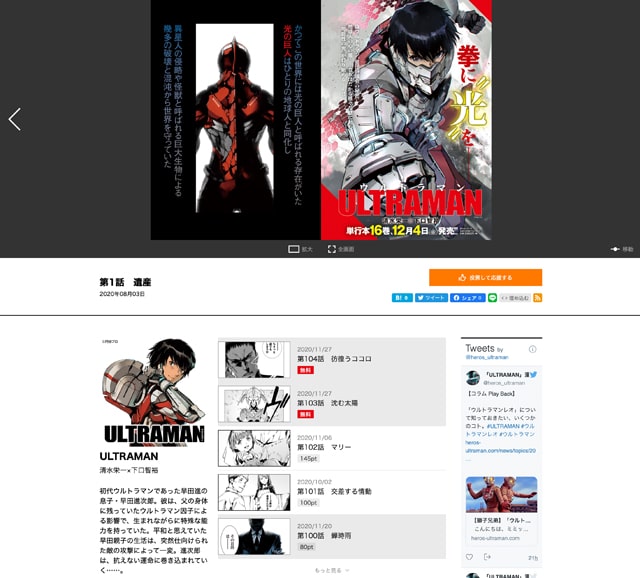 コミプレ-Comiplex-はマンガ誌・ヒーローズ!!、Webマンガ誌・ふらっとヒーローズ、わいるどヒーローズの3レーベルの作品を配信するマンガサイト。ストア機能が実装されたことにより、ユーザーは無料公開中のエピソードに加え、購入したポイントを使って配信中の全作品の各話を楽しむことができる。またサービスの提供開始を記念し、本日から2021年1月8日12時までの間に新規会員登録した人には、通常150ptのところ2倍の300ptをプレゼントするキャンペーンを実施。さらに同期間中、「ULTARMAN」「アトム ザ・ビギニング」「ダブル」「キリングバイツ」など、80タイトル以上の対象作品の各話が、半額で購読できるセールも展開している。