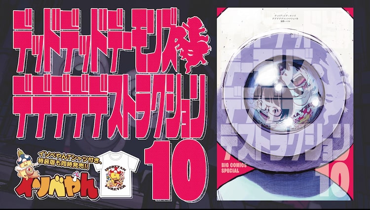 「デッドデッドデーモンズデデデデデストラクション」は、突如“侵略者”と呼ばれる存在に脅かされることとなった世界で、一見普通だが何かが決定的に変わってしまった日常を送り続ける女子たちを中心とした物語。10巻では人類終了のタイムリミットが迫る中、少女たちの思い、そして運命が揺れ動いていく。今回も通常版に加え限定版を用意。限定版には作中に登場するキャラクター・イソベやんをプリントしたTシャツが同梱されている。