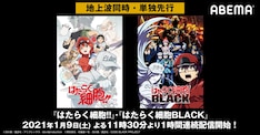 清水茜原作によるTVアニメ「はたらく細胞!!」および、原田重光・初嘉屋一生原作によるTVアニメ「はたらく細胞BLACK」が、2021年1月9日よりABEMAアニメチャンネルにて地上波と同時配信される。