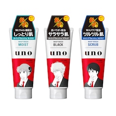 今回の「銀魂」とンズスキンケアブランド「ウーノ」によるコラボレーションは、“普段はコミカルなのに決めるときには決める”という「銀魂」のキャラクターたちが、「ウーノ」が理想とする“余裕を感じるカッコいい人物像”と重なり、さらに「ウーノ」愛用者に「銀魂」のファンが多いことから展開されたもの。「ウーノ ホイップウォッシュ」には銀時、新八、神楽の3人がそれぞれ「ウーノ」の世界観でクールに決める姿がプリントされた。サラサラ肌に洗い上げる「ウーノ ホイップウォッシュ(ブラック)銀時」、毛穴汚れを落としツルツル肌に洗い上げる「ウーノ ホイップウォッシュ(スクラブ)新八」、うるおいを保ちながら肌をスッキリさせる「ウーノ ホイップウォッシュ(モイスト)神楽」の3種が用意されているので、ファンは気になる商品を手にしてみては。