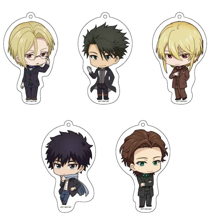 ラインナップされたのは、アクリルキーホルダーセット、パスケース、缶バッジ付巾着。ウイリアム、アルバート、ルイス、モラン、フレッドのモリアーティ陣営5人の描き下ろしミニキャライラストが使用された。価格はアクリルキーホルダーセットが税込3300円、パスケースが税込1100円、缶バッジ付巾着が税込1540円。TVアニメ「憂国のモリアーティ」は、4月よりTOKYO MX、BS11、MBSにて2クール目が放送される。