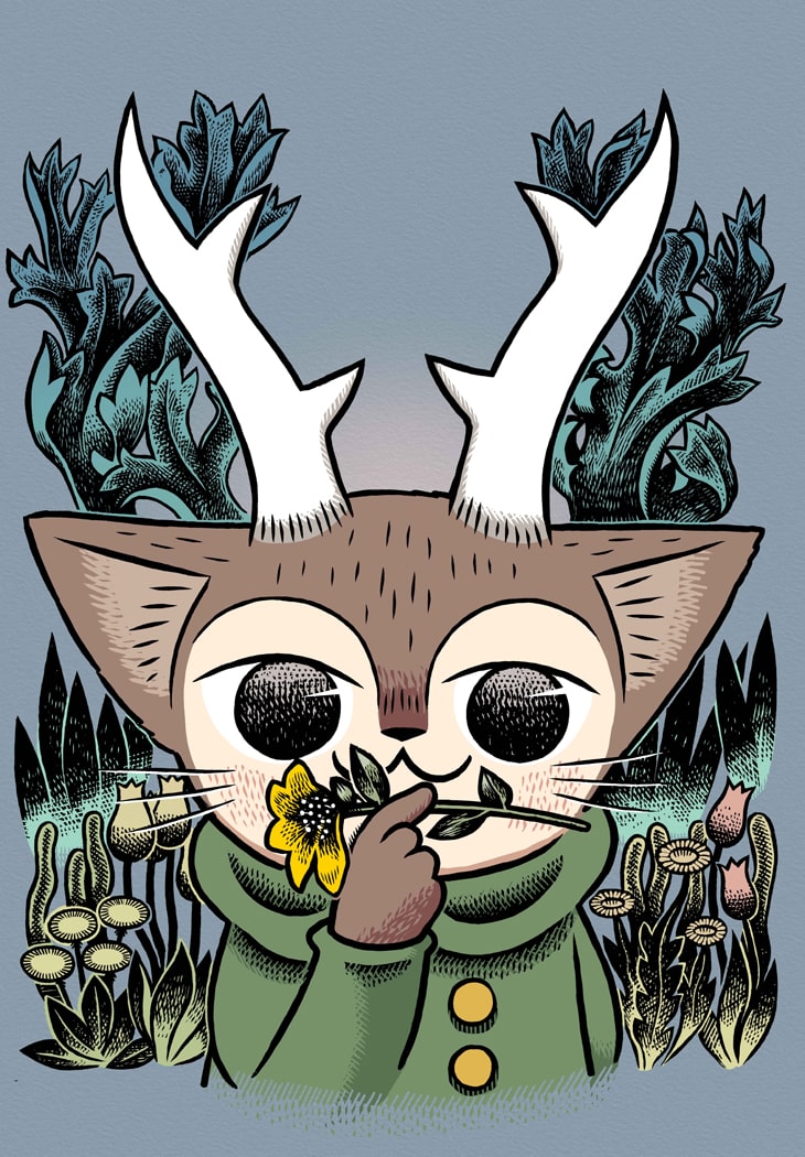 「こぐまのケーキ屋さん」のカメントツが描く「MORRIS~つのがはえた猫の冒険~」は、ひなたかほりによるフィギュア作品「MORRIS」のコミカライズ。角の生えた猫・モリスの物語で、第1話では布をかぶり姿を隠したモリスがとある建物を訪れる。