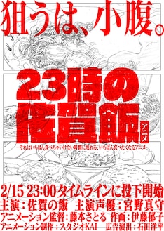 「23時の佐賀飯アニメ」は2015年7月にスタートし、佐賀の情報を発信していくプロジェクト「サガプライズ!」の一環として企画された作品。コロナ禍による観光客の減少などで打撃を受けている、佐賀に関係する生産者・飲食店を応援するために制作された。現在、旬を迎えている冬の食材を中心に、有明海で獲れる竹崎カキ、ブランド牛の佐賀牛や、豚骨スープと生卵や海苔のトッピングが特徴の佐賀ラーメンといった食べものを、1日1種ずつ描いていく。アニメには宮野真守が出演。さらにアニメーション監督を藤本さとる、作画を伊藤郁子、広告演出を石田洋平、アニメーション制作をスタジオKAIが務める。