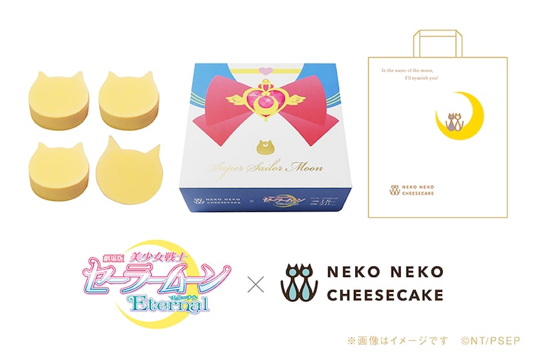 「ねこねこチーズケーキ」とのコラボでは、マンゴーとパッションフルーツのピューレを加えた「にゃんチースーパーセーラームーン(マンゴー)」と、いちごのピューレを加えた「にゃんチースーパーセーラーちびムーン(ストロベリー)」が登場。また各キャラクターのコスチュームが描かれたオリジナルデザインのボックス、紙の手提げ袋も用意された。