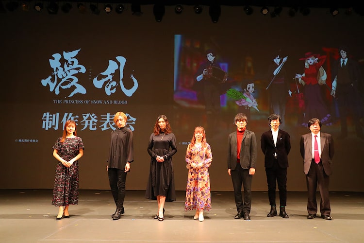 オリジナルTVアニメ「擾乱 THE PRINCESS OF SNOW AND BLOOD」の制作発表会が、本日2月9日に東京・明治座にて開催された。この日メインキャストとして発表された三森すずこ、蒼井翔太、Raychell、伊藤彩沙、小林親弘、さらにアニメーション制作を務めるBAKKEN RECORDの大松裕プロデューサー、ブシロード代表取締役会長・木谷高明氏が登壇した。