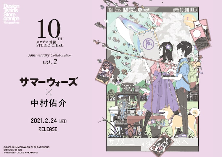細田守監督映画「サマーウォーズ」とイラストレーター・中村佑介のコラボTシャツが、グラニフ国内店舗および公式オンラインストアで2月24日に発売される。