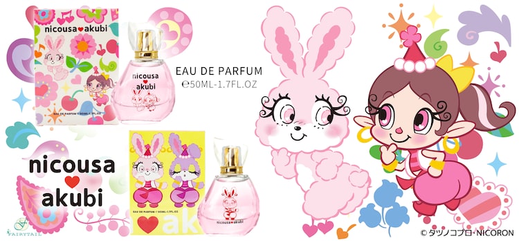 TVアニメ「ハクション大魔王」のキャラクター・アクビと、藤田ニコル公認キャラクター・nicousaのコラボ香水が登場。フェアリーテイルの公式オンラインストアおよびAmazon.co.jpで予約販売されている。