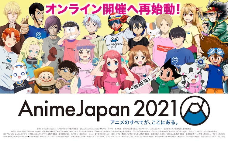 視聴チケットは3月1日13時に販売開始。27日・28日どちらかの配信をすべて観られる各日チケットが3800円、2日間の配信をすべて観られる通しチケットが7300円で用意された。3月27日のプログラムは同日20時から28日23時59分まで、28日のプログラムは同日18時から29日23時59分までアーカイブ視聴できる。イベントビジュアルには「AnimeJapan 2021」のテーマである「繋ぐ(∞)」にちなんだ描き下ろしイラストを使用。さまざまな作品のキャラクターが集結している。