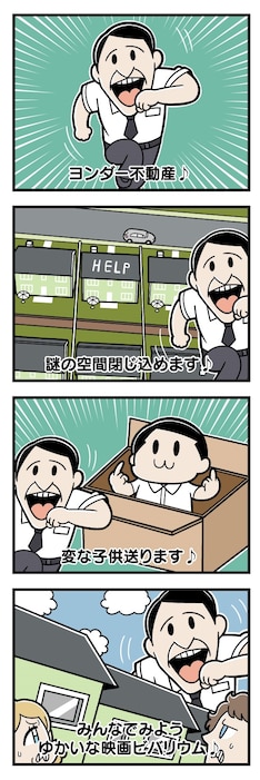 3月12日に公開される「ビバリウム」は、新居を探す若いカップルが、不動産屋に紹介された住宅地から抜け出せなくなる“ラビリンス・スリラー”。大川は謎の不動産業者・マーティンを描いた4コママンガ、辛酸は作品の感想とともに劇中シーンを描いたイラストを執筆した。