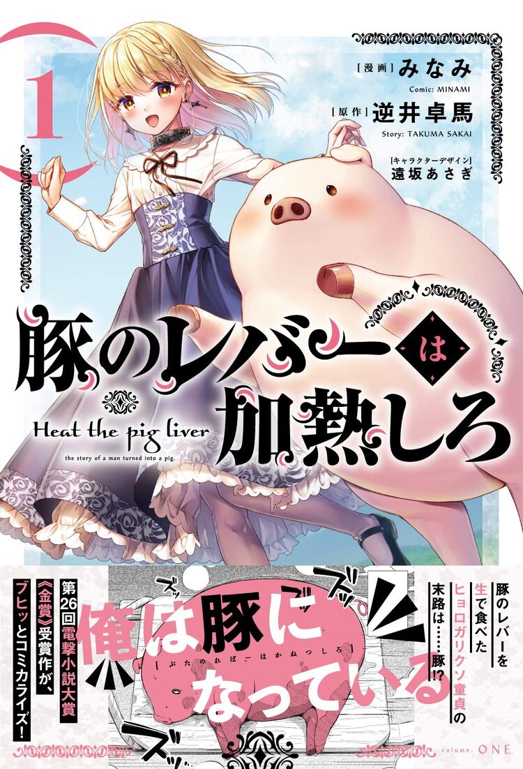 「豚のレバーは加熱しろ」は、目覚めると異世界で豚の姿になっていた男性が他人の心を読むことができる美少女・ジェスと出会う転生ファンタジー。前世では“眼鏡ヒョロガリクソ童貞”だった豚はジェスを目の前にして「豚の唾液でベトベトにしたいブヒ!」「裸を見たいと思ったら服まで脱ぎそうだ」などついつい下品な妄想をしてしまうが、心優しい彼女はそんな思考も読んでしまっても「もしお望みならば」と期待に応えようとしてくれて豚は焦ってしまう。人間の姿に戻りたい豚と、豚を助けてあげたいジェスの奮闘が描かれる。同作は電撃マオウ(KADOKAWA)で連載中。