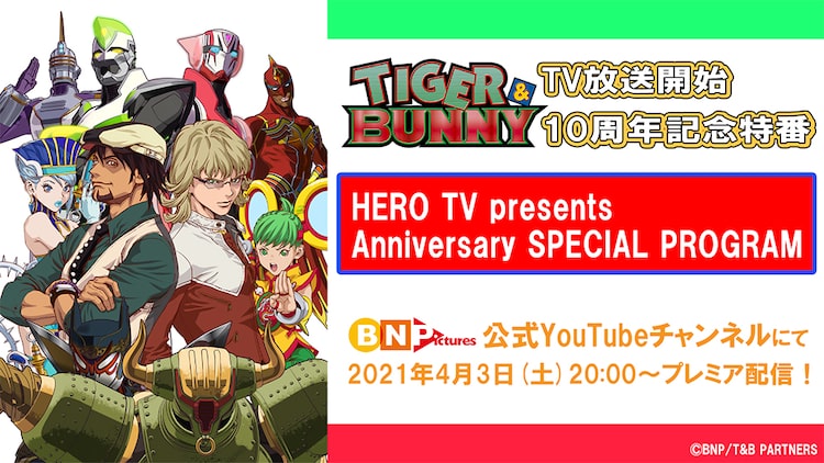 アニメ「TIGER & BUNNY」の10周年を記念した特番が、 4月3日20時よりYouTubeのBN Picturesチャンネルにてプレミア配信される。