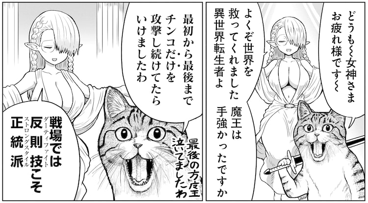 「宇崎ちゃんは遊びたい!」の丈が、本日3月11日に発売されたまんがライフオリジナル4月号(竹書房)の「異世界にマンガ家が転生したらどうなるのか、描いてみた件」に登場。魔王を倒し異世界を救った転生者として女神と会話する様子を描いている。