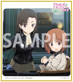 今回明らかになったのは上映開始から4週目までの特典。1週目にはキャラクター原案・島田フミカネの描き下ろしイラストを使用したミニ色紙がランダムに配布される。絵柄は全3種で大洗女子学園、知波単学園の生徒が描かれた。2週目の特典はキャラクターデザイン・総作画監督を務める杉本功描き下ろしイラストを使用したポストカード。こちらもランダム配布で、絵柄はカチューシャやアンチョビら各学校の隊長が衣装を交換したものなど、3種が用意された。3週目には、描き下ろしイラストがデザインされたポケットティッシュ、4週目にはランダム配布の生コマフィルムがプレゼントされる。