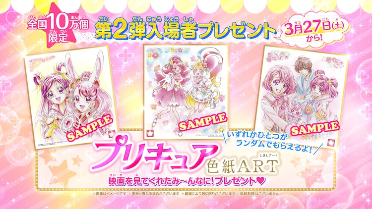 「映画ヒーリングっど▼プリキュア ゆめのまちでキュン!っとGoGo!大変身!!」の入場者プレゼントとして、公開2週目の3月27日より「プリキュア色紙アート」を配布することが明らかになった。