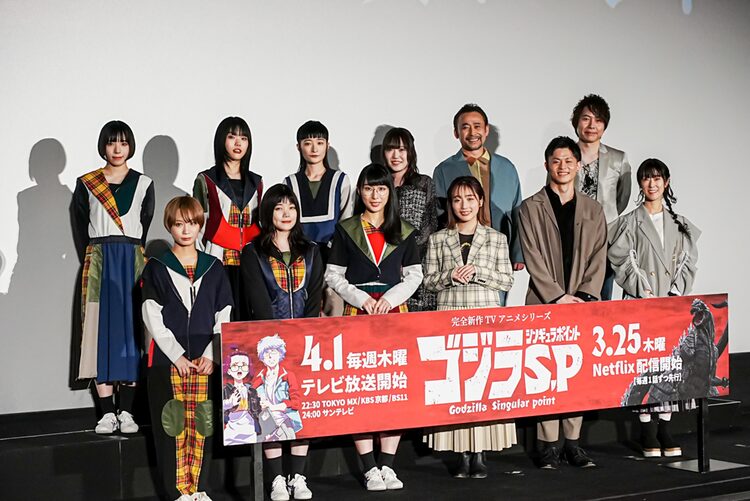 「ゴジラ S.P <シンギュラポイント>」はオリジナルストーリーで送る「ゴジラ」シリーズの完全新作として、Netflixにて3月25日より配信、TOKYO MXほかにて4月1日から放送される。イベントには2人の主人公を演じる神野銘役の宮本侑芽と有川ユン役の石毛翔弥に加え、ペロ2役の久野美咲、ユング役の釘宮理恵、大滝吾郎役の高木渉、BB役の置鮎龍太郎が登壇した。