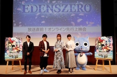 真島ヒロ原作によるTVアニメ「EDENS ZERO」第1話・第2話のオンライン先行上映会が去る3月29日に行われた。本記事ではイベント前に行われたプレス向けの質疑応答と、上映後のトークショーの模様をレポートする。