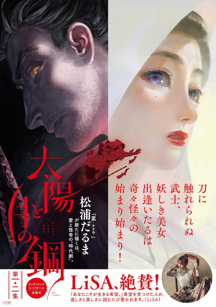 「太陽と月の鋼」はとある理由で刀を持てず、貧しい暮らしをしている中年武士・竜土鋼之助と、彼のもとに嫁いできた美しき女・月を描く時代劇。徐々に愛し合う2人だったが、彼らのもとにある日不思議な力を持つ男が現れ……。かねてより松浦だるま作品の愛読者だったと言うLiSAからは「『あなたこそが生きる希望。』希望を見つけた人の、逞しさと美しさに読むたび惹かれます」と推薦コメントが寄せられた。なお発売中のスペリオール8号では、「太陽と月の鋼」のクリアポスターが50人に当たるプレゼント企画を実施中。応募方法などの詳細は誌面を確認しよう。